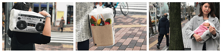 そもそもトイレットペーパーは、大きくて持ち運びにくいという印象があったが、そこに「matsukiyo」は“エンタテインメント要素”をプラス。ラジカセ以外にも、「赤ちゃん」や、野菜がはみ出た「買い物バッグ」など4種類がラインナップ。