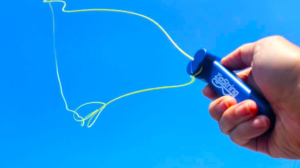 ジップストリングは世界50ヶ国以上で発売中の新感覚おもちゃで、見た目は普通のヒモですが、本体にセットしてボタンを押すと電動でヒモが高速回転し、空中に浮かせてさまざまなトリックを楽しむことができます。物理法則(重力、揚力、張力、抗力)を活かし、ヒモを自由自在に操れるのが最大の特徴です。SNSで総再生回数2億回以上の大人気商品です。